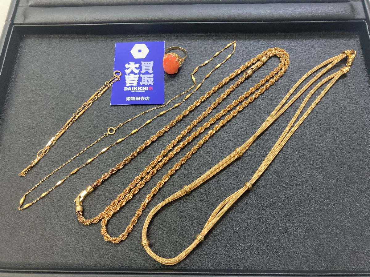 - こんにちは!<br>買取大吉 姫路田寺店です。<br><br>ゴールドジュエリーをお買取いたしました👑✨<br><br>貴金属の買取相場は高騰中です⤴️<br>ぜひ当店へお持ち込みください!<br><br>👑金の相場高騰中👑<br>金をお持ちの方は売るなら今です!<br>最高値のうちにお越しください!<br><br>🔥高級ブランド時計の買取強化中🔥<br>お待ちでしたら是非一度、<br>査定してみてはいかがでしょうか。<br><br>🉐ブランド品の買取強化中🉐<br>状態が悪い商品でも買取します!<br>ぜひ一度、無料査定にお越しください!<br><br>「傷だらけだけど大丈夫かな?」<br>「こんなものも売れるかな?」<br><br>当店では誠心誠意、買取をさせていただきます🙆🏽♂️<br><br>───────────────<br>買取大吉 姫路田寺店<br>兵庫県姫路市田寺8-13-52<br>0120-886-681<br>───────────────<br><br><a href="https://www.instagram.com/explore/tags/%E8%B2%B7%E5%8F%96%E5%A4%A7%E5%90%89/" role="link" tabindex="0">#買取大吉</a> <a href="https://www.instagram.com/explore/tags/%E8%B2%B7%E5%8F%96/" role="link" tabindex="0">#買取</a><br><a href="https://www.instagram.com/explore/tags/%E5%85%B5%E5%BA%AB/" role="link" tabindex="0">#兵庫</a> <a href="https://www.instagram.com/explore/tags/%E5%A7%AB%E8%B7%AF/" role="link" tabindex="0">#姫路</a> <a href="https://www.instagram.com/explore/tags/%E7%94%B0%E5%AF%BA/" role="link" tabindex="0">#田寺</a><br><a href="https://www.instagram.com/explore/tags/%E3%83%AB%E3%82%A4%E3%83%B4%E3%82%A3%E3%83%88%E3%83%B3/" role="link" tabindex="0">#ルイヴィトン</a> <a href="https://www.instagram.com/explore/tags/%E3%82%B7%E3%83%A3%E3%83%8D%E3%83%AB/" role="link" tabindex="0">#シャネル</a><br><a href="https://www.instagram.com/explore/tags/%E3%83%AD%E3%83%AC%E3%83%83%E3%82%AF%E3%82%B9/" role="link" tabindex="0">#ロレックス</a> <a href="https://www.instagram.com/explore/tags/%E3%82%AB%E3%83%AB%E3%83%86%E3%82%A3%E3%82%A8/" role="link" tabindex="0">#カルティエ</a><br><a href="https://www.instagram.com/explore/tags/%E3%83%96%E3%83%A9%E3%83%B3%E3%83%89/" role="link" tabindex="0">#ブランド</a> <a href="https://www.instagram.com/explore/tags/%E3%83%8F%E3%82%A4%E3%83%96%E3%83%A9%E3%83%B3%E3%83%89/" role="link" tabindex="0">#ハイブランド</a>